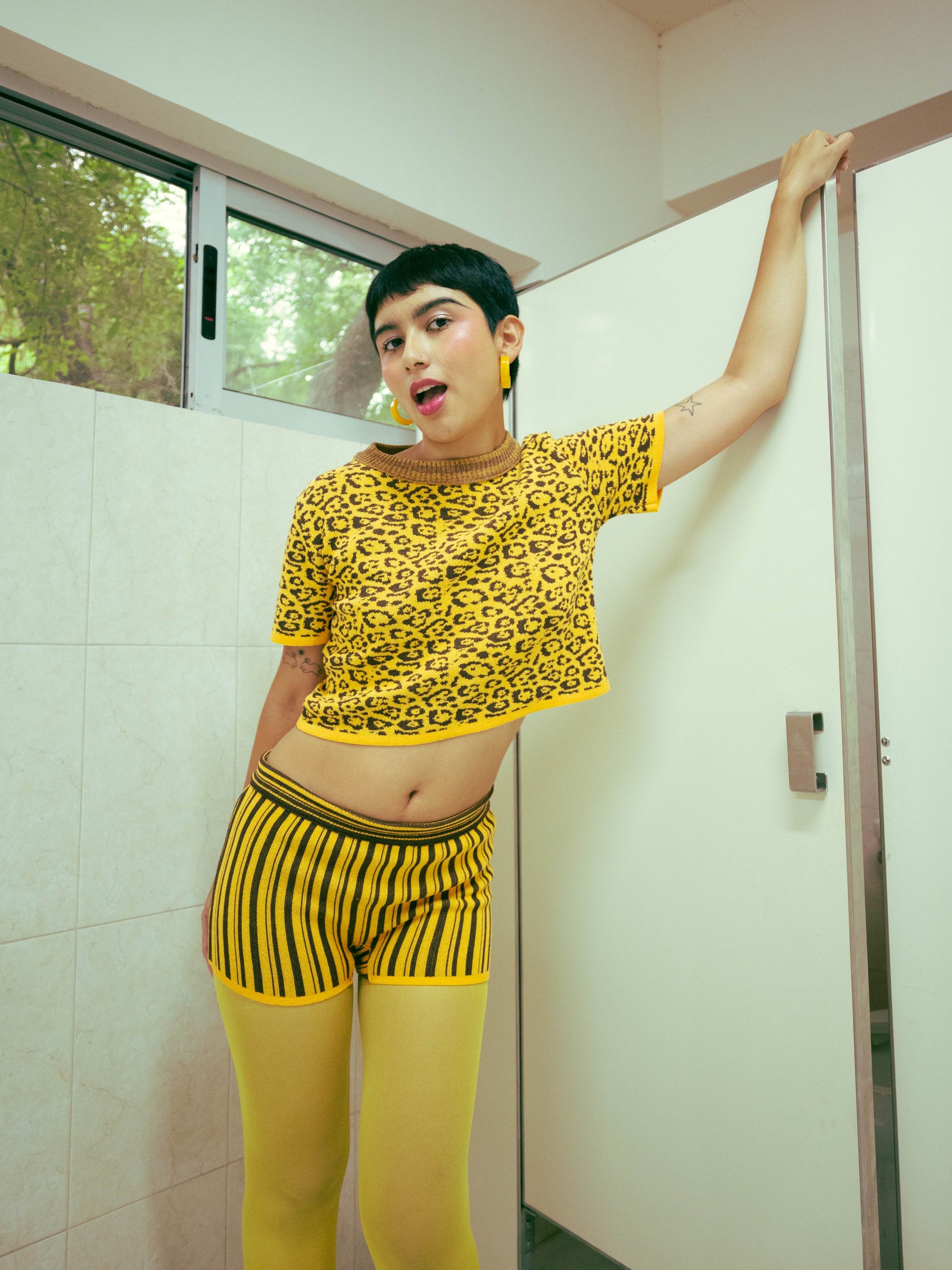 El Kitty Top es un crop top de algodón con estampado de leopardo en jacquard, perfecto para sacar tu lado más juguetón sin dejar la comodidad. Con una textura tejida única y un fit favorecedor, es esa prenda que te hace sentir segura, divertida y con onda.