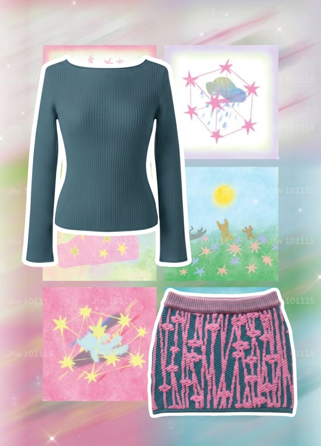 El Set Rosie combina dos piezas que fueron hechas la una para la otra: la mini falda de jacquard con textura y el top de manga larga en tejido rib. Juntas crean un look lleno de personalidad, color y feminidad. ✨