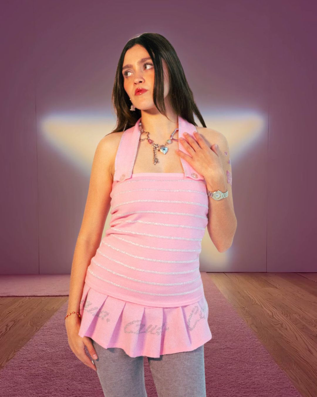 El Sweet Top es nuestro básico favorito de la colección porque entiende que lo lindo también puede ser versátil. Es un top dos en uno que se adapta a tu mood: úsalo en versión halter con su strap desmontable, sostenido por los botones más bonitos en forma de flor con glitter, o llévalo strapless para un look más clean y effortless. Tú eliges si hoy eres opción A o B, pero te llevas a casa las dos posibilidades. Dulce, funcional y muy tú ✨